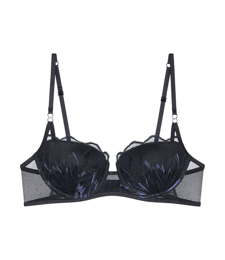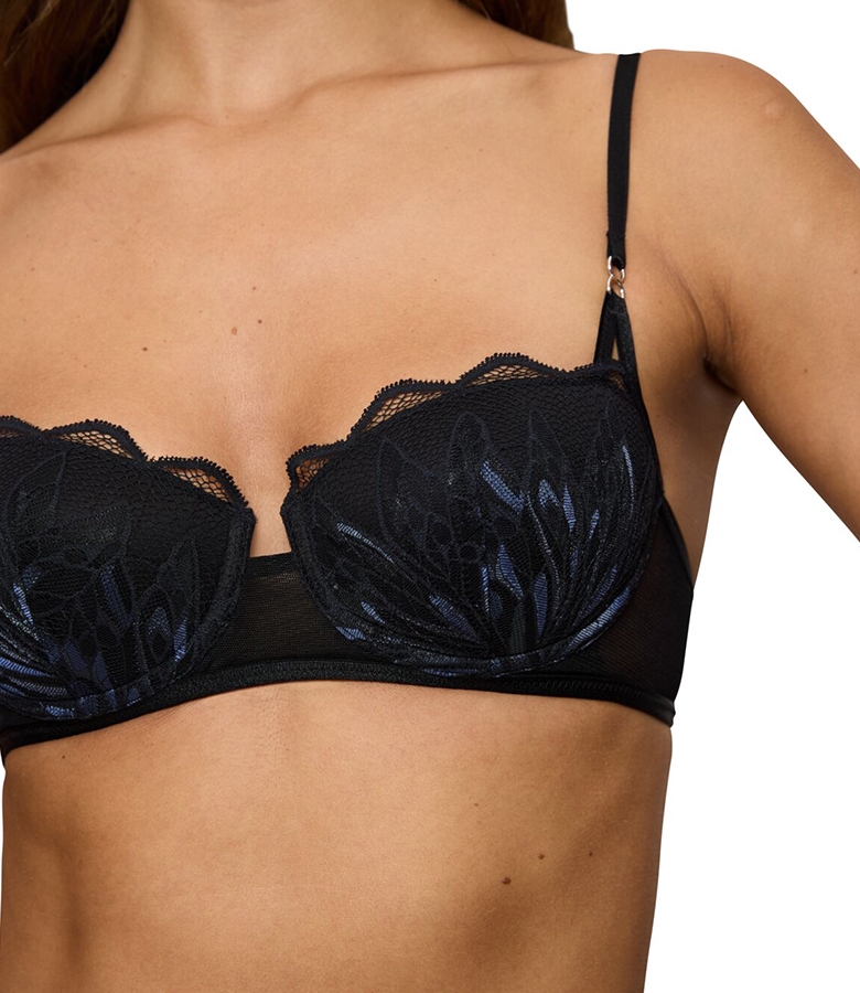 Fashion σχεδιασμός σουτιέν με μπανέλα και επένδυση. Κατασκευασμένο από υψηλής ποιότητας ιταλική δαντέλα σε συνδυασμό με τούλι. Με απαλή και εύκαμπτη μπανέλα για άνεση. Απαλή εσωτερική επένδυση στα cups που χαρίζει μεταξένια αίσθηση. Ρυθμιζόμενες τιράντες με διακοσμητικά μεταλλικά στοιχεία. Εντυπωσιακό σουτιέν που κολακεύει το ντεκολτέ. Σύνθεση: 44% Polyamide, 43% Polyester, 10% Elastane, 3% Viscose