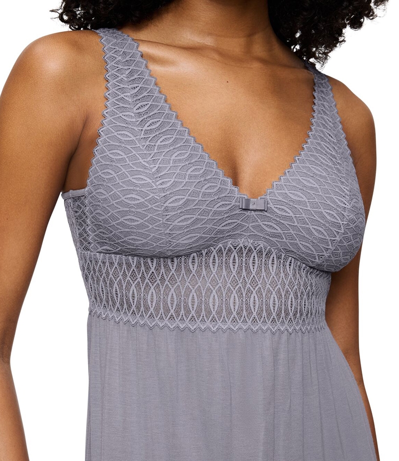 Nightdress πολυτελείας με εξαιρετικά απαλή υφή. Με ιδιαίτερη ανάγλυφη δαντέλα στο επάνω μέρος, βαθιά V λαιμόκοψη και φαρδιές ρυθμιζόμενες τιράντες. Επένδυση στις cups με διακοσμητικό σατέν φιόγκο στο κέντρο. Μήκος πάνω από το γόνατο. Εξαιρετικά μαλακόή, επιτρέπει στο δέρμα να αναπνέει χαρίζει άνεση και κομψότητα. Σύνθεση: 94% Modal, 6% Elastane